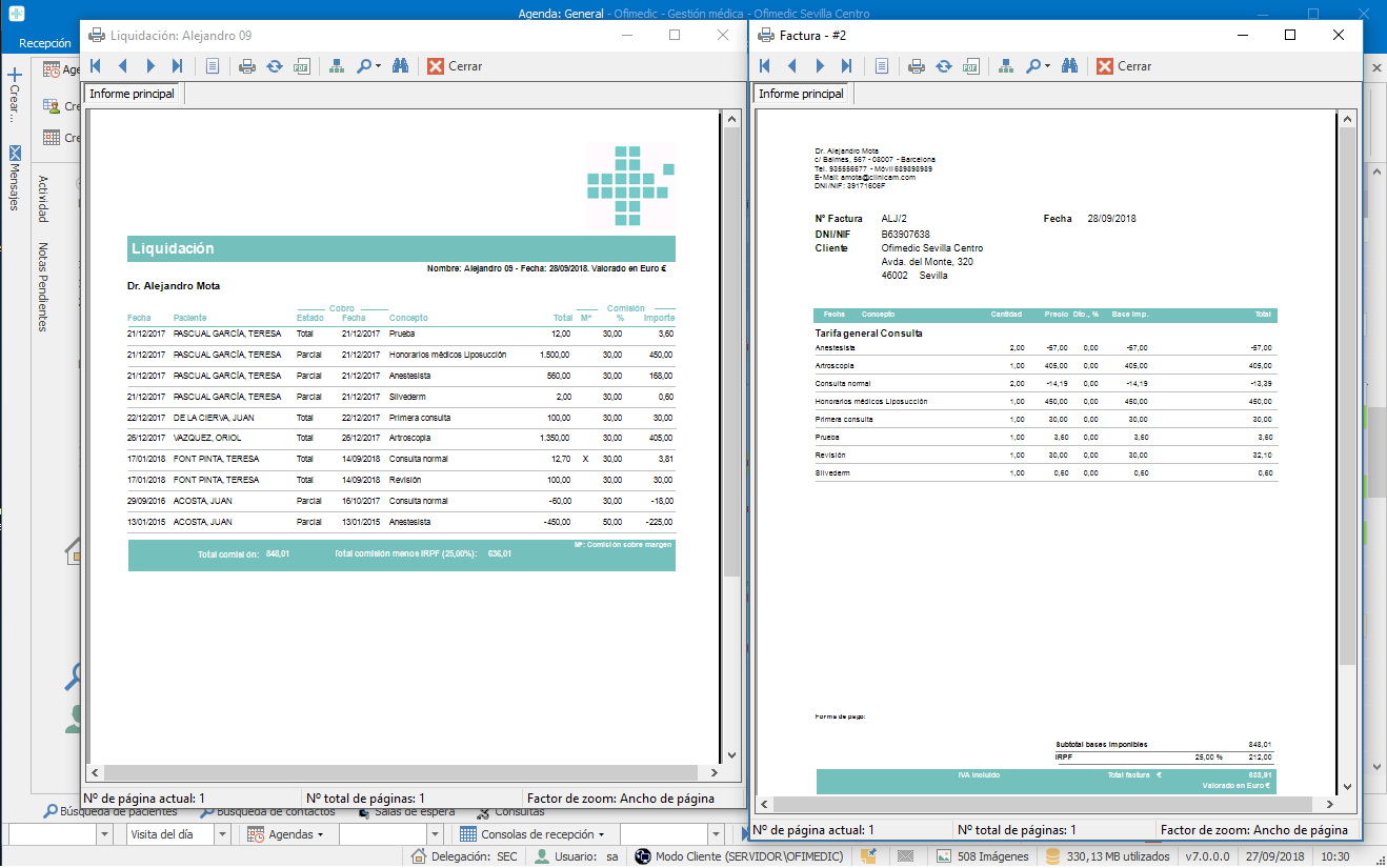 Dispone también de las herramientas para confeccionar y conocer las liquidaciones de comisiones a sus facultativos: