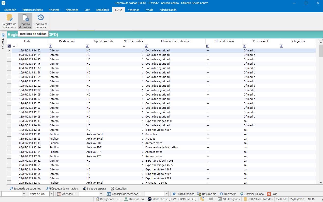 - Registro automático de exportaciones de datos (solo permitidas para administradores).