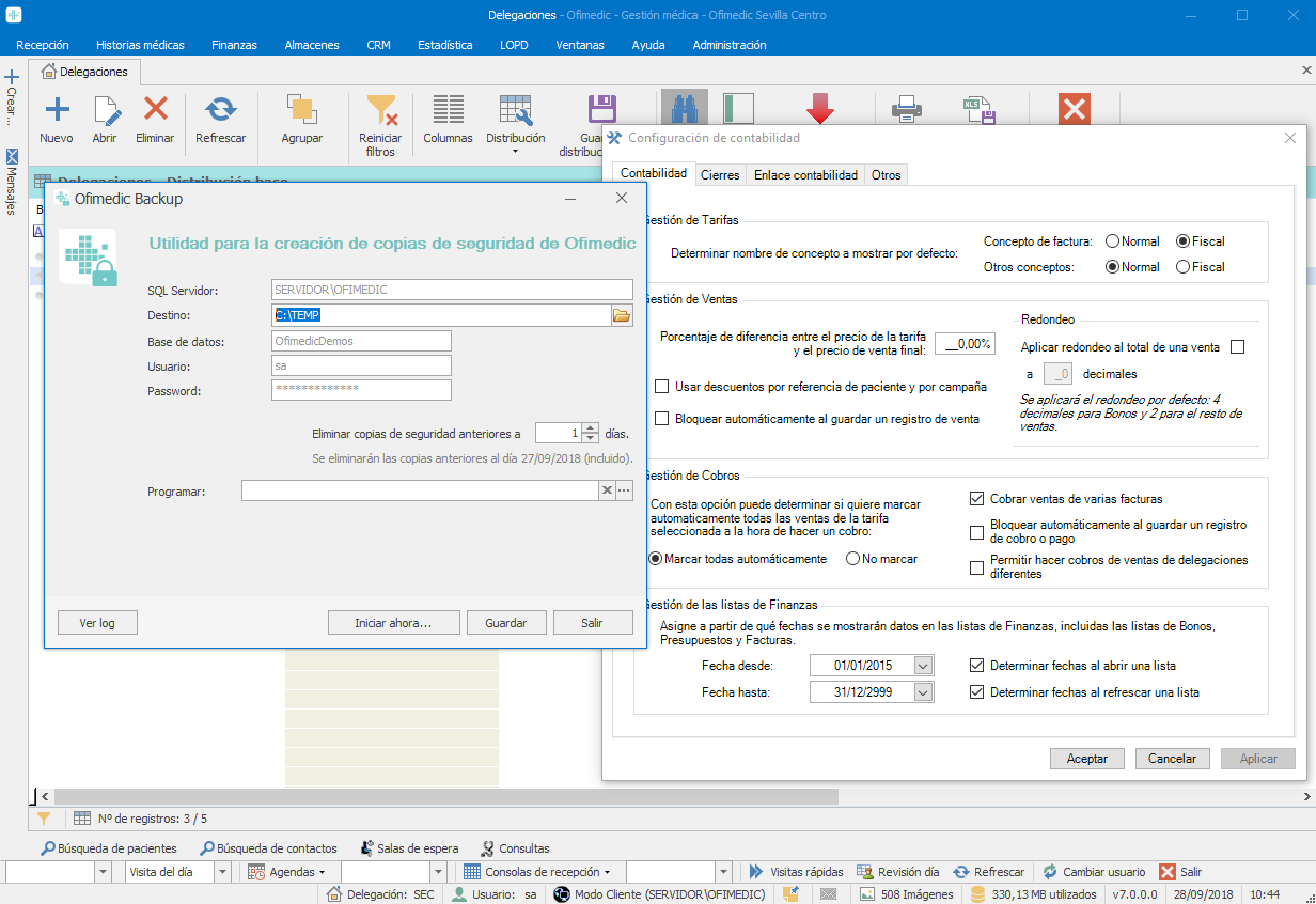 • Gestión de múltiples delegaciones asignando sus datos, usuarios, agenda, series de facturación,…