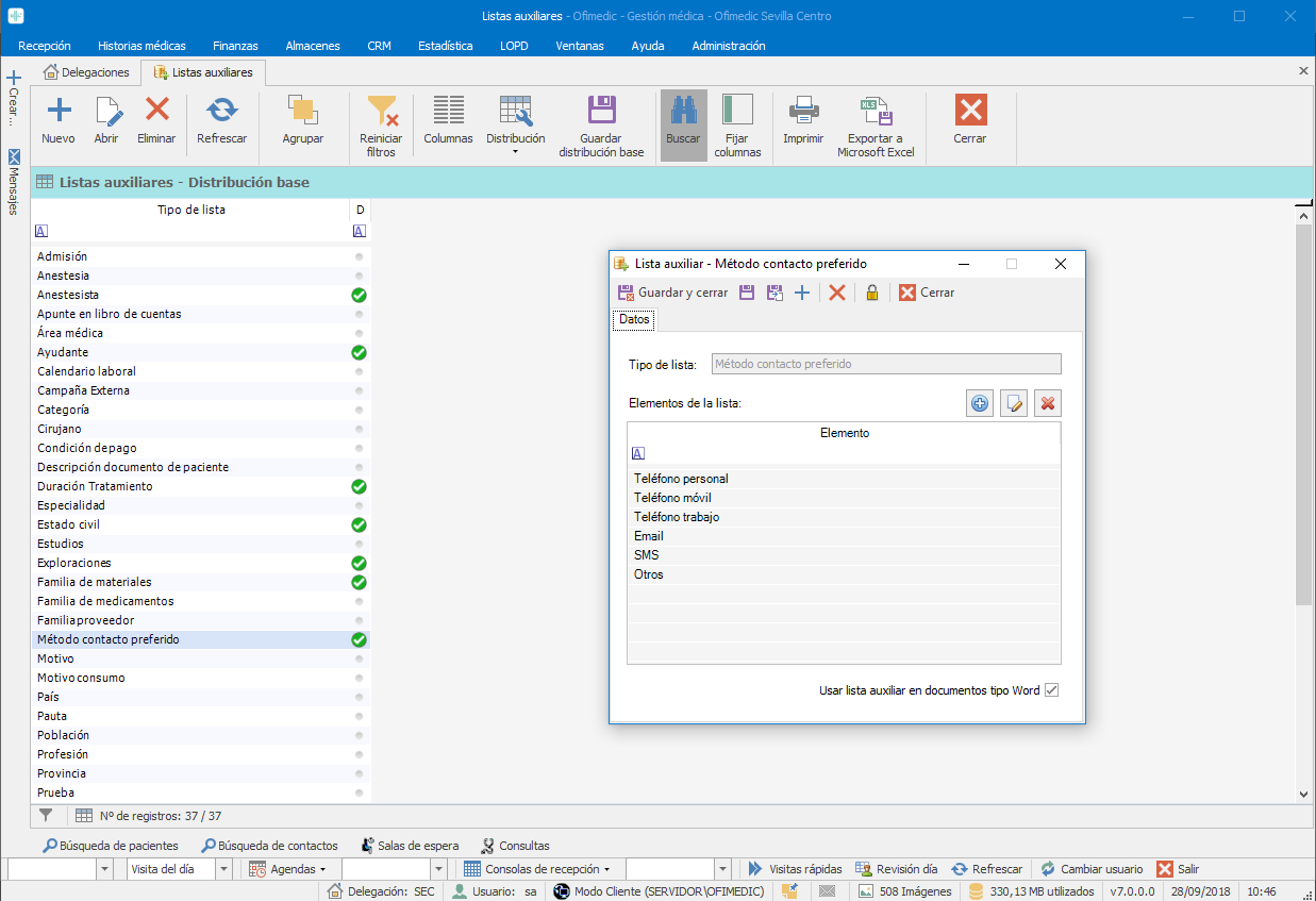 Opciones generales: Configuración de Listas auxiliares
