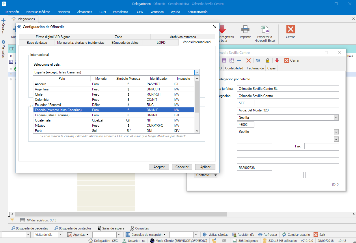 Opciones generales: Configuración Internacional y creación de Delegaciones (datos generales)